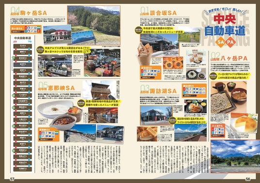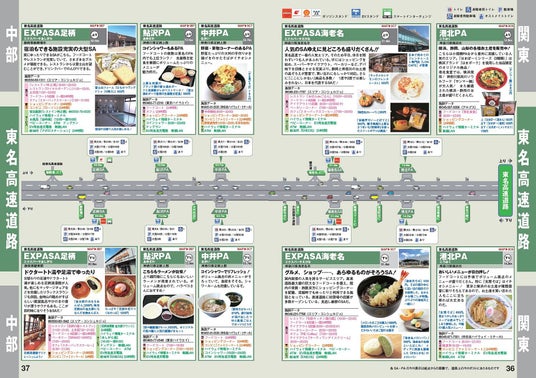今年度版では、レイアウトを見直し、さらに閲覧性がアップ。各SA・PAの写真サイズも大きくなって、各エリアの魅力がより伝わりやすくなっている。