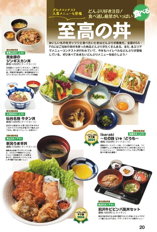 ●SA・PAの「見る、食べる、体験する、買う、遊ぶ」の情報が凝縮! 巻頭企画では「至高の丼」を特集。グルメコンテストの入賞メニューをはじめ、全国の魅力的な丼が大集合
