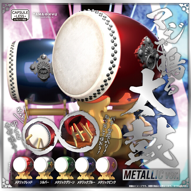 「マジで鳴る太鼓METALLIC ver.」は9月28日(水)より全国のカプセルトイコーナーにて順次販売致します。