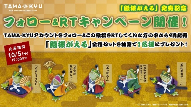 ただいまTAMA-KYU(タマキュー)公式Twitterにて「殿様がえる」全種セットが当たるキャンペーンを実施中!