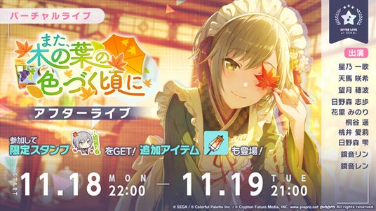 イベント終了後には「バーチャルライブ」でのアフターライブとして、「また、木の葉の色づく頃に アフターライブ」を開催いたします。
