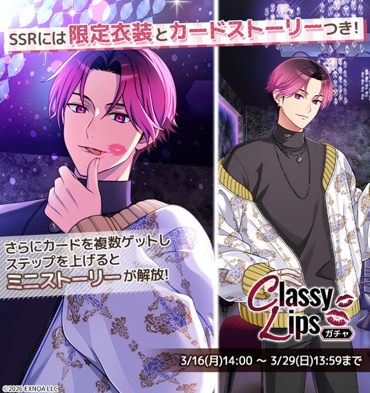 期間限定で、「SSR【クラッシーリップ】凌弥」と「SR【クラッシーリップ】ヨウ」が初登場するガチャを開催いたします。
