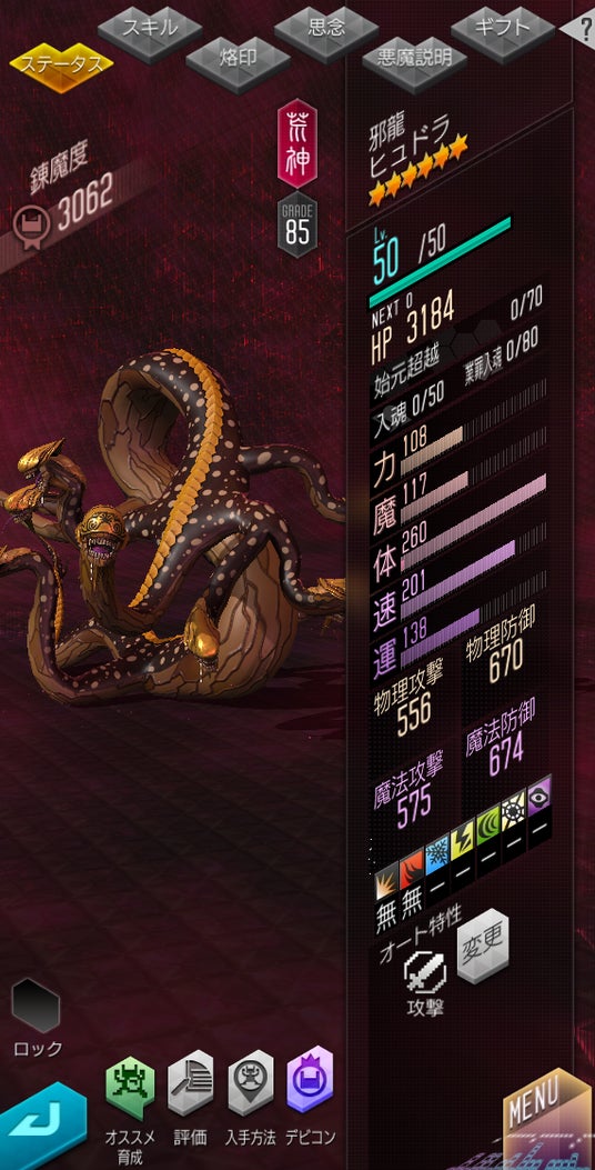 同日より開催の、“真・女神転生V発売日記念ログインボーナス 第2弾”や、悪魔連合襲来イベント“怪物の母から生まれし九頭の毒蛇”のミッション達成報酬などでもらえる「記念召喚札II」で挑戦可能な、新★5悪魔「邪龍 ヒュドラ」がラインナップされた記念召喚IIが期間限定で登場します。
