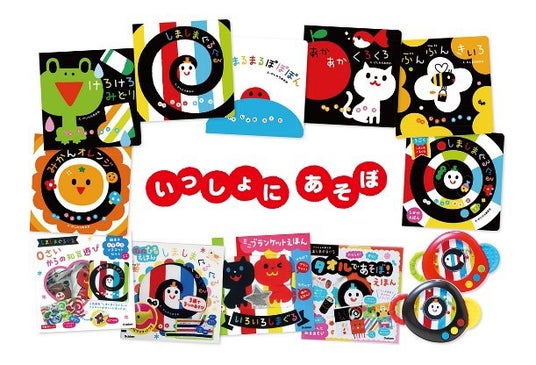 シリーズ累計発行部数340万部を突破した、絵本「しましまぐるぐる」をはじめとする「いっしょにあそぼ」シリーズ。赤ちゃんが注目すると言われている黒を中心に、生後6か月未満でも見やすいコントラストの強い配色で「赤ちゃんが泣き止む!」「よく笑う!」と好評をいただいております。この4月には最新刊『いっしょにあそぼ しましまぐるぐるシールであそぼ!』が発売されたばかりの大人気シリーズです。