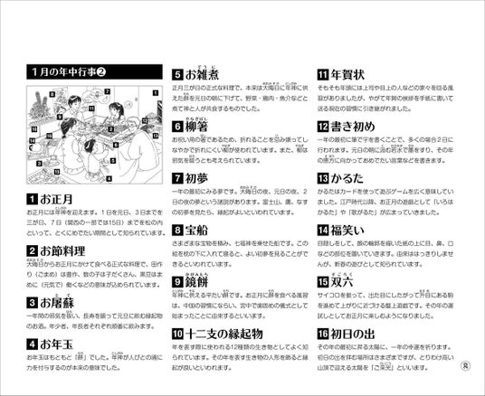 ▲各ぬり絵の裏面には、モチーフになっている行事に関する豆知識を掲載