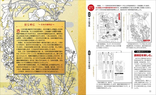 初心者でもすぐ始められるぬり絵見本や、四季の年中行事の説明もたっぷり紹介。仕事や子育てに忙しい現役世代から、ゆとり時間を充実させたいシニア世代まで、自分のペースで隅から隅まで楽しめます。
