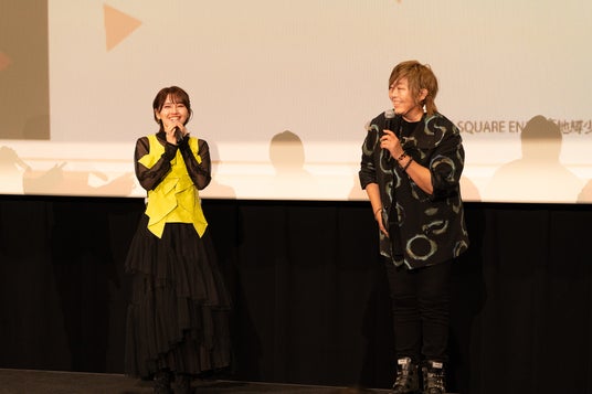 上映直後の盛り上がりに包まれる会場にキャスト陣が登壇。早速、緒方さんは様々なシーンが描かれた第1の怪、第2の怪の中でも、鬼頭さんが花子くんに声を当てた“とあるシーン”が印象深かったと語ると「鬼頭明里は私の喋り方をああいう風に思っていたんだなって(笑)」と観客の笑いを誘います。