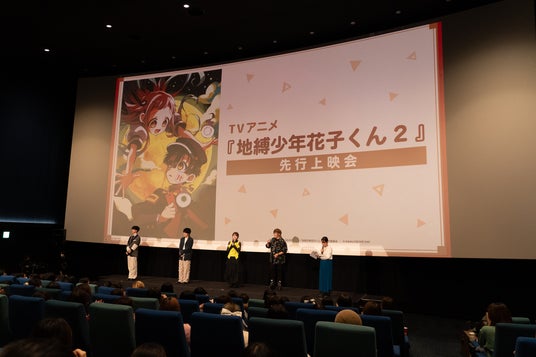 放送を直前に控えた2024年12月14日(土)には、グランドシネマサンシャイン 池袋にてTVアニメ『地縛少年花子くん2』第1の怪、第2の怪の先行上映会が開催され、本編を楽しんだ観客のもとに緒方恵美さん(花子くん・つかさ役)、鬼頭明里さん(八尋寧々役)、千葉翔也さん(源 光役)、土岐隼一さん(蒼井 茜役)が駆けつけ、各話の感想や今後の注目ポイントを語り合いました。