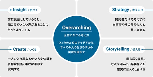パナソニックグループは、ユニバーサルデザインにおいて重要視してきた身体的課題に加え、精神的および社会的課題にも対応するあたらしい「やさしさ」を創出し、互いに尊重し合うインクルーシブな社会の実現を目指しています。この取り組みの一環として、障害者を含む多様な人々と「パナソニックのインクルーシブデザイン」の考え方を共創しました。また、得られた知見を自社内に留めることなく公にすることで、社会変革の促進を目指しています。
