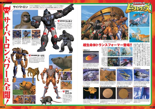 トランスフォーマー以外のアニメファンからの人気も高いCG版の『ビーストウォーズ』『ビーストウォーズメタルス』『ビーストウォーズリターンズ』だけではなく、当時メインターゲットの子どもに大人気を博した『ビーストウォーズII』『ビーストウォーズネオ』も特集しています。