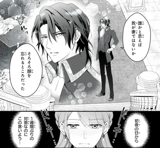 悪役妻であるため、極力デレないようにポーカーフェイスを演じますが内心はドキドキ…!