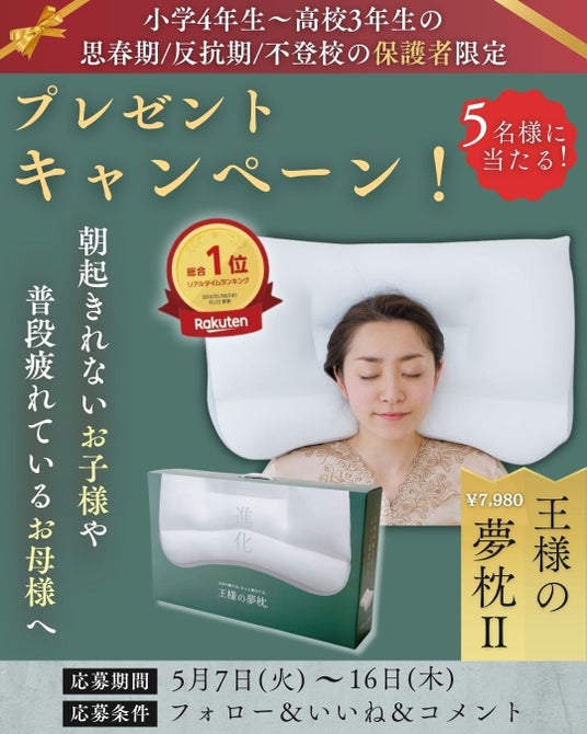 WILL学園のInstagramでは、思春期・反抗期・不登校でお悩みのご家庭に向け、「不登校経験者」「フリースクール・サポート校統括責任者」の2つの当事者として独自の子育て術を発信しています。前回の“光る目覚まし時計”に引き続き、ストレス過多のお母様や学校の悩みで寝られないお子様の悩みを解決したいと考え、今回は“安眠枕”をプレゼントさせていただきます。