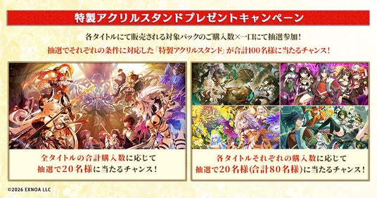 抽選でそれぞれの条件に対応した「特製アクリルスタンド」が合計100名様に当たるチャンス!