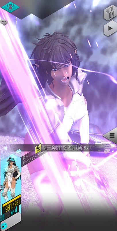 敵単体に防壁貫通を得た電撃属性の打撃型ダメージを威力180で与え、攻撃成功時、連動効果「1ターンの間、敵単体の電撃属性相性を1段階低下させる。」「敵単体に救済の霊鎖を1カウント与え、自身をチャージ状態にする。(1ターン中1回まで)」
