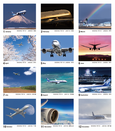民間航空専門誌「月刊エアライン」で掲載100回を超える人気連載「Go!Go!787」のカレンダーです。被写体となっているボーイング787 は、ANAやJALも多数導入している現代の主力旅客機。連載の著者である航空写真家の岡本 豊 氏はそんな787に並々ならぬ愛着を持ち、氏が全国の空港で撮影した787の傑作写真で構成しています。