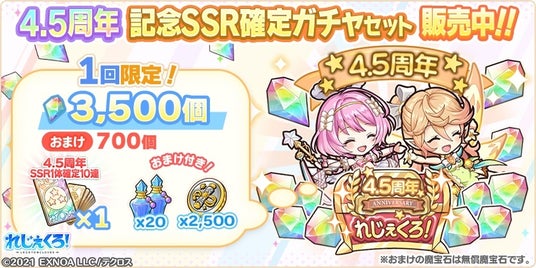 ▼4.5周年記念!最大100連引ける1日1回10連無料ガチャ開催!