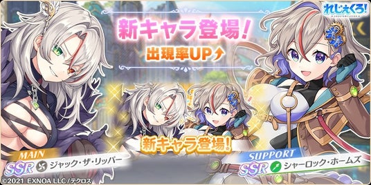 合同会社EXNOA(本社:東京都港区、CEO:東條 寛、URL:https://games.dmm.com/)が運営するDMM GAMESは『れじぇくろ!~レジェンド・クローバー~』(https://www.legend-clover.net/)にて、4月14日(火)から4.5周年を記念!最大100連引ける1日1回10連無料ガチャ開催!さらに「アンドロメダ&カシオペア」「ジャック・ザ・リッパー」「シャーロック・ホームズ」が新登場!