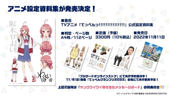 株式会社ブシロード(本社:東京都中野区、代表取締役社長:木谷高明)のグループ会社にあたる株式会社ブシロードクリエイティブ(本社:東京都中野区、代表取締役社長:成田耕祐)は、「TVアニメ『てっぺんっ!!!!!!!!!!!!!!!』公式設定資料集」と「よんこまてっぺんっ!!!!!!!!!!!!!!![完全版]」がリアルイベント『てっぺんグランプリ2022』の開催日となる11月6日(日)より順次発売することをお知らせいたします。
