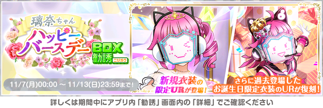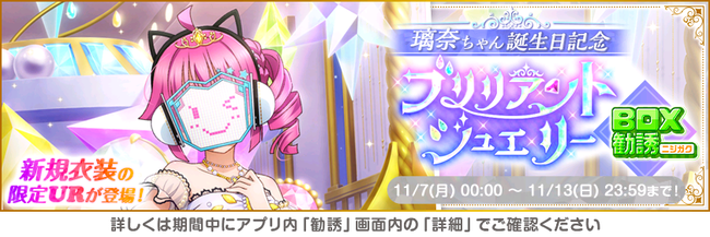 株式会社ブシロード(本社:東京都中野区、代表取締役社長:木谷高明)は、KLab株式会社(本社:東京都港区、代表取締役社長:森田英克)と共同開発いたしましたスマートフォン向けアプリ『ラブライブ!スクールアイドルフェスティバル』(以下、スクフェス) において虹ヶ咲学園スクールアイドル同好会天王寺璃奈誕生日記念キャンペーンの開催をお知らせいたします。