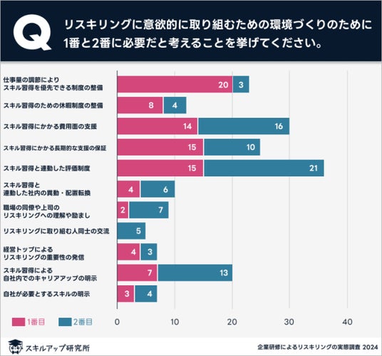 また、環境づくりのための1番目に必要な施策として「仕事量の調節によりスキル習得を優先できる制度の整備」の声が多く挙げられた。