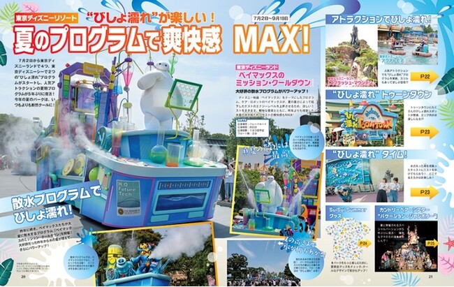 7月2日から東京ディズニーリゾートで始まる夏のプログラムの直前情報も大特集。東京ディズニーランド(R)で4つ、東京ディズニーシーで2つの“びしょ濡れ”プログラムや、この夏のおすすめグッズ、「カントリーベア・シアター“バケーション・ジャンボリー”」をご紹介。夏のプログラムで爽快感もMAX!