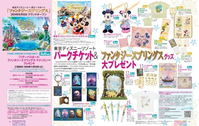 スペシャル企画は、3号連続「1デーパスポート:ファンタジースプリングス・マジック」(ペア)プレゼントの3号目! ファンタジースプリングスを満喫できるパークチケットを、3組6名様にプレゼント! 7月号・7月号増刊・8月号分の3枚の応募券を集めて、ふるってご応募ください! もちろん8月号でも東京ディズニーリゾート(R) パークチケット&ファンタジースプリングスグッズ大プレゼントもご用意!