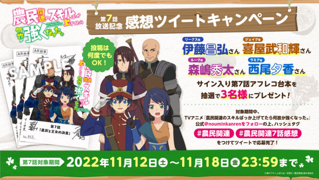TVアニメ『農民関連のスキルばっか上げてたら何故か強くなった。』 第7話放送記念 感想ツイートキャンペーン