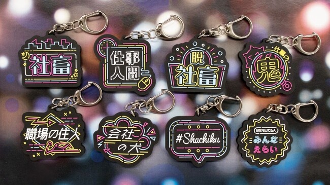 働くみなさんに捧げます!職場につけていきたくなるネオン風デザインのおしゃれなキーホルダーです!