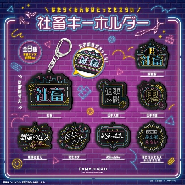 株式会社ブシロード(本社:東京都中野区、代表取締役社長:木谷高明)のグループ会社にあたる株式会社ブシロードクリエイティブ(本社:東京都中野区、代表取締役社長:成田耕祐)は、オリジナルカプセルトイブランド『TAMA-KYU(タマキュー)』から、働く皆様に捧げる新商品「\はたらくみんなはとってもえらい/社畜キーホルダー」を全国のカプセルトイコーナーにて2022年11月11日(金)より順次販売致します。