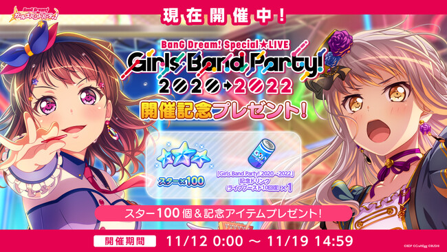 「ガルパ」にて「BanG Dream! Special☆LIVE Girls Band Party! 2020→2022」記念キャンペーン開催中!