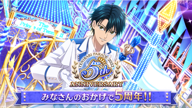 株式会社ブシロード(本社:東京都中野区、代表取締役社長:木谷高明、以下「ブシロード」)は、11月16日(水)より『新テニスの王子様 RisingBeat』アプリ内で「テニラビパレード2022」と銘打った各種5周年記念キャンペーンを開始することをお知らせいたします。年に一度の特別なキャンペーンに、皆様ぜひご参加ください。