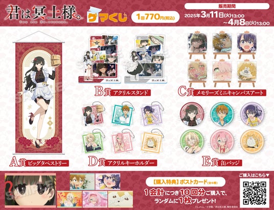 株式会社カードラボ ゲーマーズ(本社:東京都豊島区、https://www.gamers.co.jp/ 以下ゲーマーズ)は、ハズレなしのオンラインくじサービス「ゲマくじ」にて、2025年3月11日(火)13:00よりTVアニメ「君は冥土様。」を販売することをお知らせいたします。