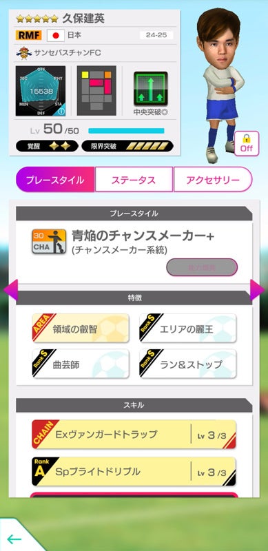 なお、今回のスカウトでは、★5選手が「レベルMAX(Lv.50)/覚醒2段階達成/各スキル・各能力UP Lv.2達成」で登場します。
