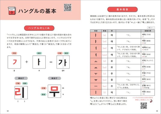 「ハングルが難しそう…」と韓国語を諦めてしまった人や、ハングルをなかなか覚えられなくて挫折してしまった人も大丈夫です。巻頭の「ハングルの基本」ページで、ハングルの重要ポイントをわかりやすく解説しています。