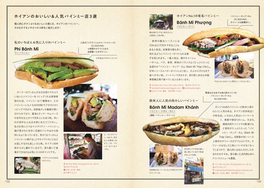 アオザイで街歩きしてみよう / ダナン&ホイアンで買える&スーパーで買えるおみやげ図鑑 / ローカル料理図鑑 / 香草の種類と効能 / 大事な食文化のひとつ ベトナム朝ごはん / ダナンで食べられるフエ料理 / ベトナムのアルコール事情 / おやつに食べるローカルスイーツ / 雨季・乾季別ベトナムのフルーツ / ベトナムらしさ◎ “バッチャンネイル” / オーダーメイドで服やサンダルをつくろう! / ホイアンの4 大名物料理 / バインミーって? / ベトナムの結婚式 / ベトナムの猫&犬事情