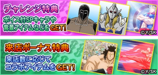 「キン肉マン」「ラーメンマン」「ロビンマスク」など、全5種のボイス付きSPキャラが登場します。