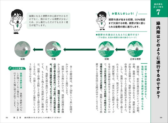 ▲第1章ではそもそも緑内障とはどんな病気なのか? 失明するのか? どのように症状が進行し、治ることはあるのか? といった疑問にお答えします