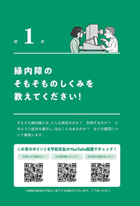 ▲各章の扉には緑内障に関する理解をより深めることができる動画の二次元コードが掲載されています
