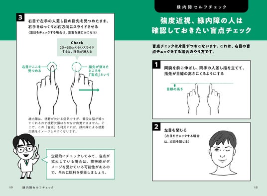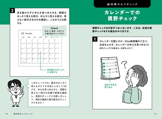 ▲強度近視、緑内障の人は定期的に確認しておきたい盲点チェックと、カレンダーを用いた視野チェックの方法がわかります