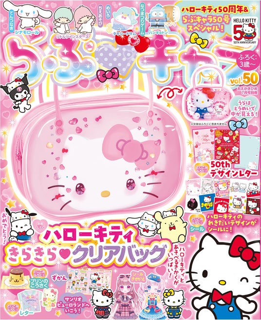 サンリオキャラクターといっしょに遊んで学べる雑誌『らぶキャラ』。今回は<創刊50号>とハローキティ<50周年>という、「50」でつながるアニバーサリーを祝う特別号です!