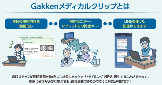 株式会社 学研ホールディングス(東京・品川/代表取締役社長:宮原博昭)のグループ会社、株式会社 学研メディカルサポート(東京・品川/代表取締役社長:清水修)は、2024年8月1日(木)に患者向け説明動画作成・配信システムである「Gakkenメディカルクリップ」をリリースします。