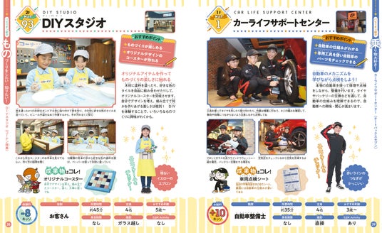 各パビリオンを「食べ物を作りたい!」「乗り物大好き!」など、仕事内容の分野別にまとめてわかりやすくしています。