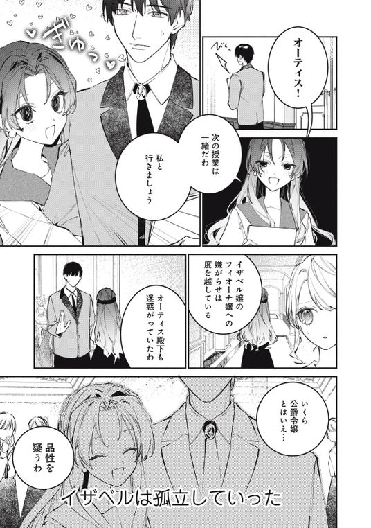 イザベルに憑依した元OLのアキは、彼女の想いを汲み、彼女に冷たくしてきた者たちを拒絶する。