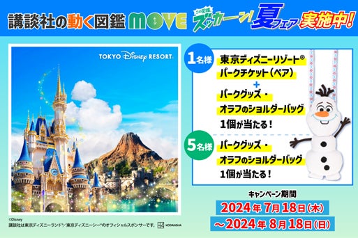 「ズッカーン!夏フェア」応援キャンペーン!として、MOVE公式X(@zukan_move)にて、「東京ディズニーリゾート(R)︎パークチケット」(ペア)とパークグッズ・オラフのショルダーバッグが合計で6名様に当たるプレゼントキャンペーンを開催します。