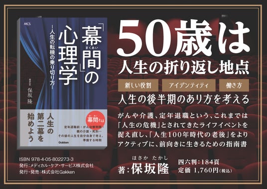 株式会社 学研ホールディングス(東京・品川/代表取締役社長:宮原博昭)のグループ会社、メディカル・ケア・サービス株式会社(埼玉・さいたま市/代表取締役社長:山本教雄)は、2024年6月20日(木)に、『「幕間」の心理学―人生の転機の乗り切り方―』を発行します。