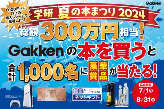 株式会社 学研ホールディングス(東京・品川/代表取締役社長:宮原博昭)のグループ会社、株式会社 Gakken(東京・品川/代表取締役社長:五郎丸徹)は、2024年7月1日(月)より「学研 夏の本まつり2024 総額300万円相当! Gakkenの本を買うと合計1,000名様に豪華賞品が当たる!」キャンペーンを開始いたしました。