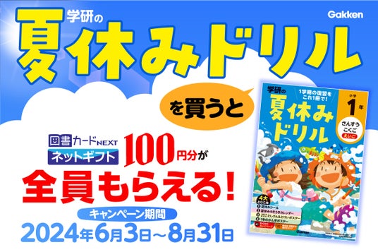 ●「学研の夏休みドリル」図書カードネットギフト100円分全員プレゼントキャンペーン
