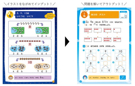 夜はイラストをながめてインプット、朝は問題を1ページ解いてアウトプット。夜と朝の脳に適した学習ができるドリルが新登場!