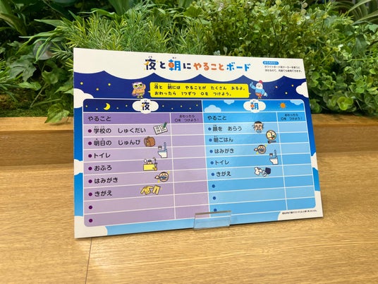 ▲「夜と朝にやることボード」つき。その名の通り、夜と朝にやるべきことをチェックできる。