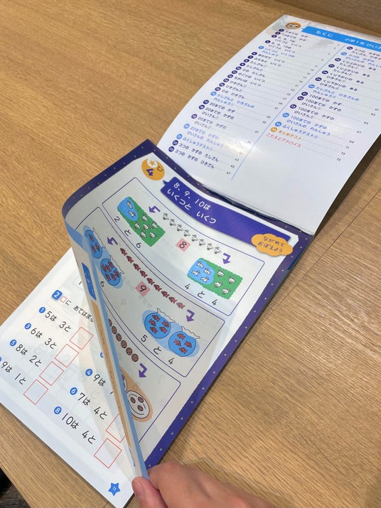 2.夜寝る前に、オモテ面の夜のページのイラストをながめて、計算や漢字について学びましょう。朝起きたら、ウラ面の朝のページの問題を解いて、前日の夜にイラストで学んだ内容を確認しましょう。